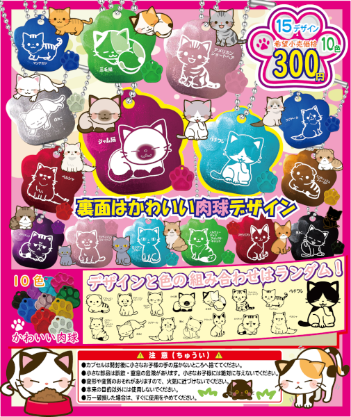ねこ (メタル肉球キーホルダー) 全15デザインセット