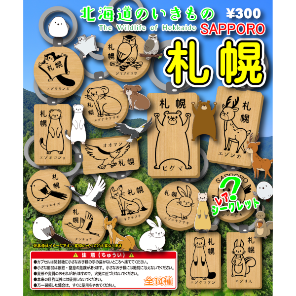 北海道のいきもの 札幌限定 (木製キーホルダー) 全14種セット